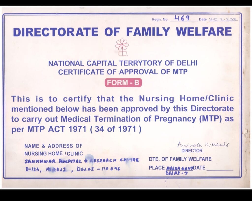 Sankhwar Hospital is a Government Registered MTP center Registration No 429/2002